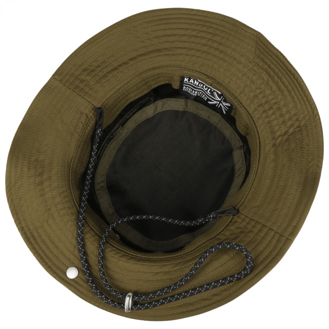 Στο πίσω μέρος διαθέτει κορδόνι με stop για ρύθμιση εφαρμογής, ενώ στο πλάι ξεχωρίζει το ανάγλυφο σιλικονούχο λογότυπο Kangol® στον ίδιο τόνο με το ύφασμα.
