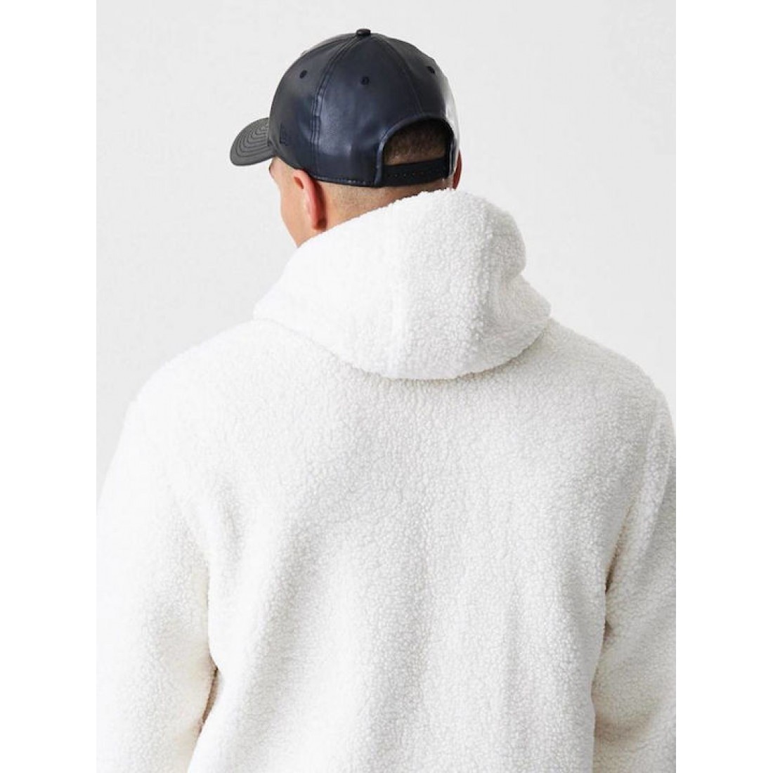 Unisex ζακέτα Sherpa σε λευκό χρώμα με κουκούλα, σχεδιασμένη για ζεστασιά και άνεση, με καθαρό αθλητικό look στους τόνους των New York Yankees.